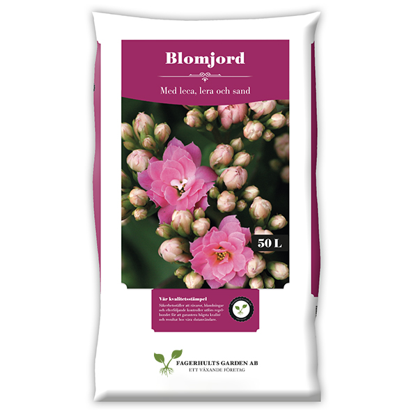 Blomjorden är avsedd för krukväxter inomhus. Jorden är grundgödslad och kalkad samt innehåller leca och lera som ökar dränering respektive binder näring och vatten bättre.