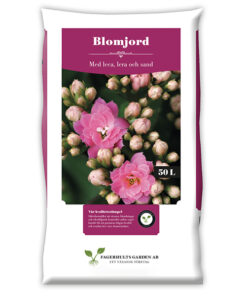 Blomjorden är avsedd för krukväxter inomhus. Jorden är grundgödslad och kalkad samt innehåller leca och lera som ökar dränering respektive binder näring och vatten bättre.